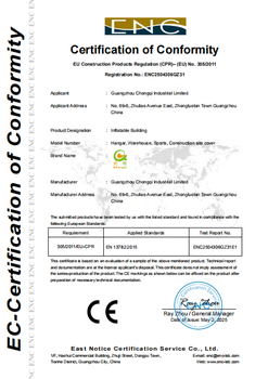 CQ 공장, 대형 휴대용 항공기 풍선 구조물 대피소 및 공항 격납고 제작